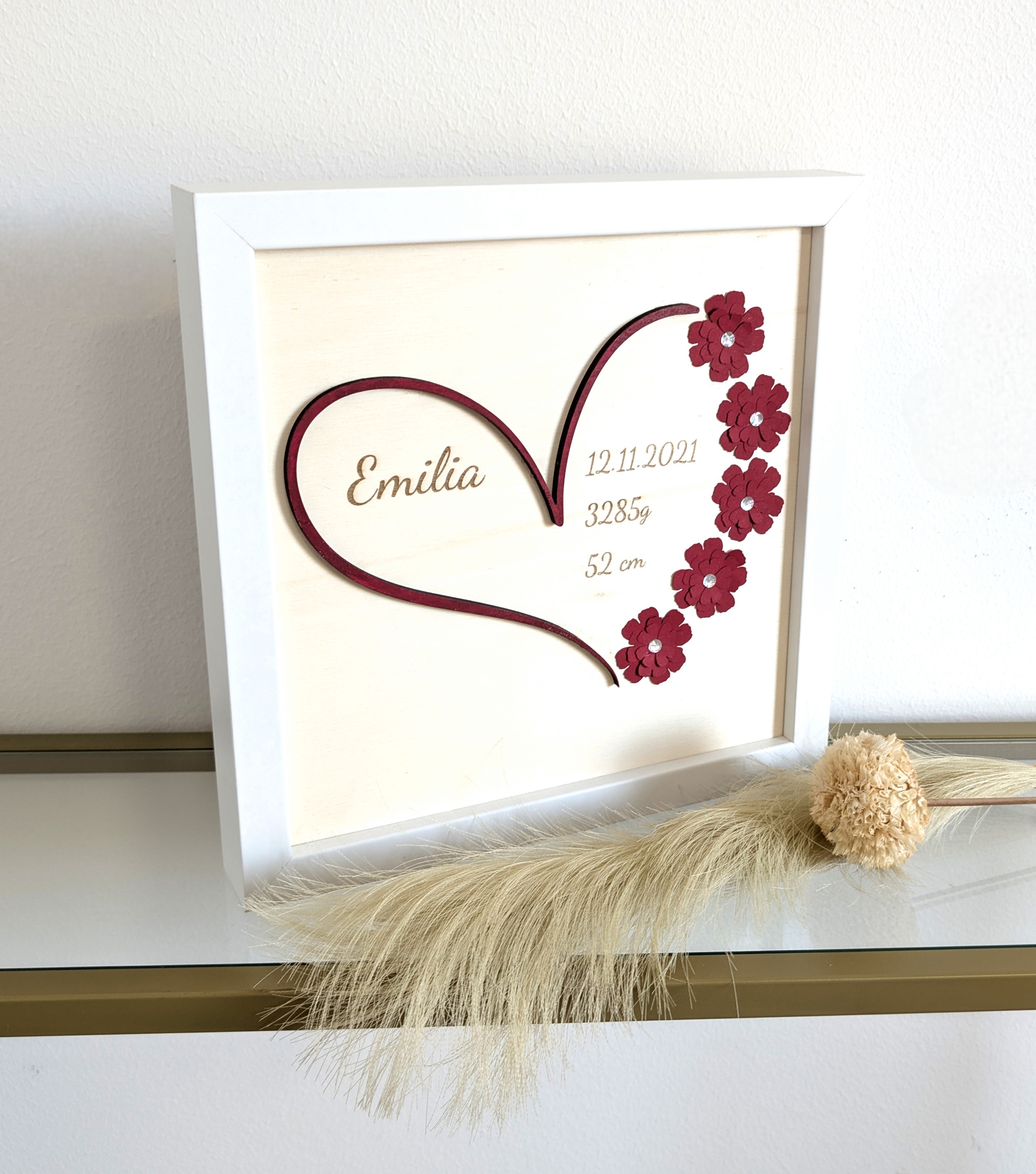 Baby Geschenk – Herz mit Namen & Geburtsdaten